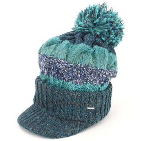 [型番:S36-802Z]同系色のボーダー柄のポンポン付きKnitJeep。ボリューム感があり、コーディネートの主役になってくれます。ポンポン部分は取り外し可能。上質なイタリア糸を用いた日本製ならではのハイクオリティな品質なので、永くご愛用いただけます。手洗い可能なので、いつでも清潔に使えるのも嬉しいポイントです。