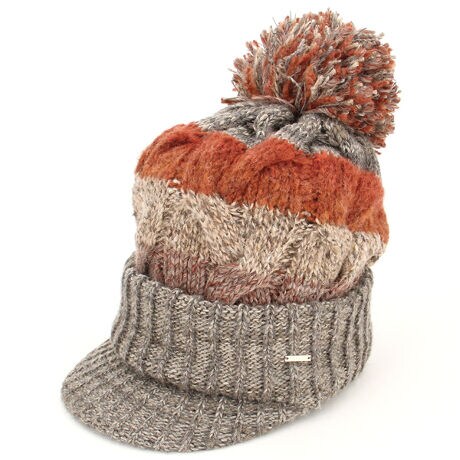 [型番:S36-802Z]同系色のボーダー柄のポンポン付きKnitJeep。ボリューム感があり、コーディネートの主役になってくれます。ポンポン部分は取り外し可能。上質なイタリア糸を用いた日本製ならではのハイクオリティな品質なので、永くご愛用いただけます。手洗い可能なので、いつでも清潔に使えるのも嬉しいポイントです。