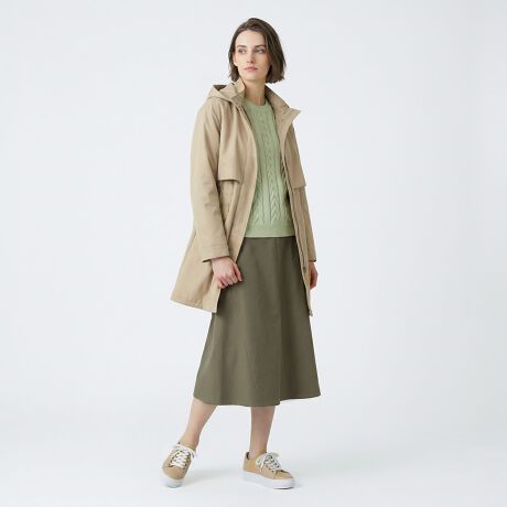 光沢感が美しいシャンブレー生地で仕立てたコートです。比翼仕立てにより、フロントのデザインをすっきり見せているのもポイント。フードはシーンに合わせて取り外しが可能です。軽やかに羽織れる素材感とミドル丈で、ロングシーズン着回ししていただけます。裾には、シルエットに変化を付けられるドローコードが付属。