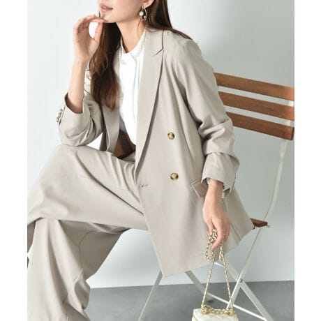 上品な質感と快適な着心地を両立したダブルジャケットです。ポリエステル素材のしなやかな風合いに、ストレッチを効かせて動きやすく仕上げました。シワになりにくく、長時間の着用でも美しいシルエットをキープ。ダブル釦のデザインが、羽織るだけでトレンド感ときちんと感をプラスします。長いシーズン着まわせ、オフィスシーンではもちろん、カジュアルに羽織ってもサマになる万能なアイテムです。