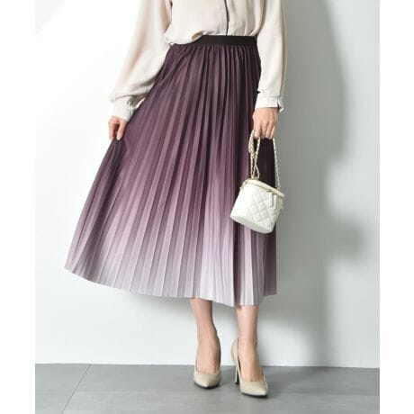 歩くたび女性らしく揺れるシルエットが魅力。アコーディオンプリーツは縦長シルエットも強調してくれ、すらりとしたスタイルに決まります。グラデーションプリントで華やかさをプラスしながら、キレイ目にもカジュアルにも相性抜群のプリーツスカート。大人っぽい落ちついたカラーでロングシーズン着まわせるのも嬉しいポイントです。ウエストはゴム仕様になっているので、リラックスしたラフな着心地も◎