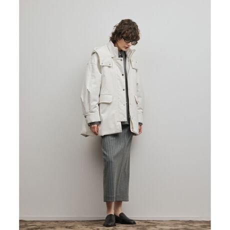 多彩な着こなしが叶うマルチWAY機能が大きな魅力。裏にドットボタンを配し着丈は3段階で調整可能。ヒップがしっかり隠れるロング丈に加え、裾を折ってハーフ丈デザインも楽しめます。ハーフ丈はバルーン調のシルエットがニュアンスあるシルエットを演出。