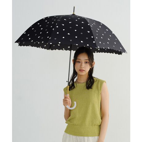 小振りなハートが散りばめられた、大人可愛いデザインの雨傘。