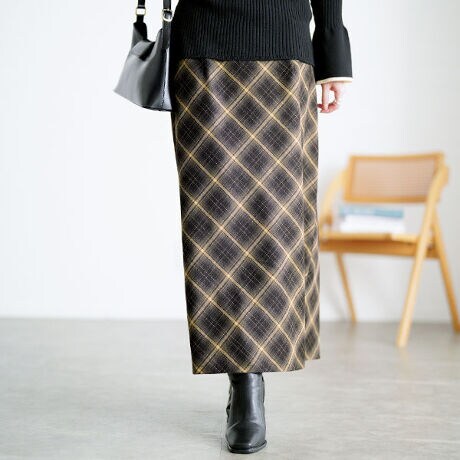 クラシックなタータンチェックが主役のナロースカートです。すっきりしたIラインで大人の雰囲気をまとえるロング丈。バックゴムでラクな穿き心地ながら足首まで伸びるシルエットが縦ラインを強調。さらにバックスリットで足さばきもスムーズに。フロントから見たときのシルエットが綺麗に映るよう計算された形がポイント。大人のきれいめスタイルにもカジュアルにもなじむ万能さが魅力です。オールシーズン活躍してくれる素材、どんなトップスとも相性抜群。クラシックで上品なチェックを気軽に楽しみたい方におすすめです。