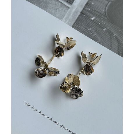 韓国トレンドアクセ | メタリックフラワーロングピアス