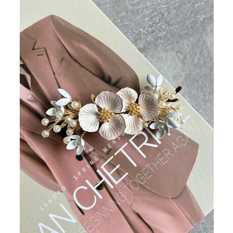 繊細に造形された花びらやパール調ビーズが光を受けて柔らかく輝き、特別な日のスタイルをよりエレガントに仕上げます。