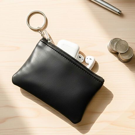 シンプルで使いやすい、レザー調のマルチミニポーチ。ほどよいサイズ感で、小銭や鍵、イヤホンなどの小物収納にぴったり。ファスナー付きで中身がこぼれにくく、リング付きなのでバッグやベルトループにも簡単に取り付け可能。シンプルなデザインで、どんなスタイルにもすっきり馴染む万能アイテム。