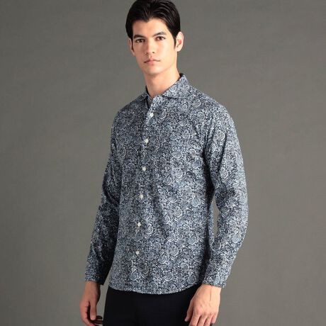 TEXTA ボタニカルプリント カッタウェイカラーシャツ