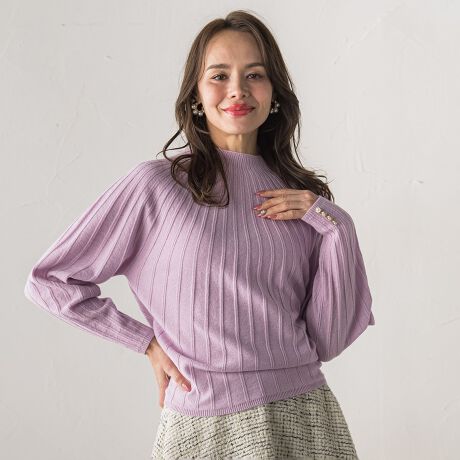 放射線状に編まれたリブ目には細見え効果もありスタイルアップが叶い、ホールガーメントニットなので繋ぎ目がなく着心地が良いのも嬉しいポイント。