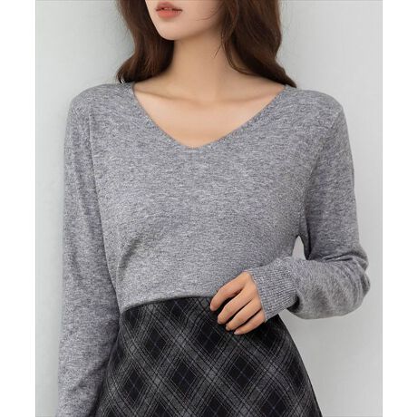 襟ぐりが広めのVネックでデコルテ周りを綺麗見せ♪