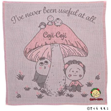 コジコジと次郎、トミー、テル子、カツブーがゆったりくつろぐほのぼのとしたデザインです。右下のコジコジの刺繍がアクセントになった一枚です。