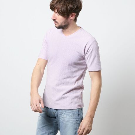オリジナル幾何学柄ジャカード生地を使用した浅めのVネックプルオーバーになります。