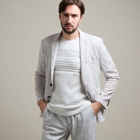 凹凸のある素材感とジャカード編みで表現したメッシュ調の穴が見た目に涼しげな素材です。
