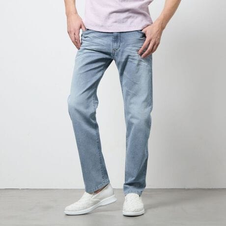 腰回りに適度なゆとりを出し、膝から裾にかけてまっすぐ落ちるレギュラーフィットのストレートシルエット。