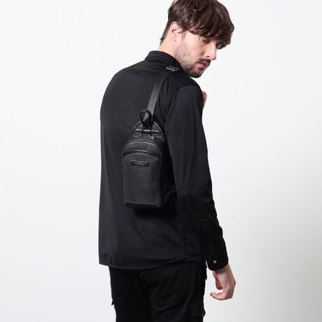 カラーにより異なる素材を使用したモードな印象のミニボディバッグ。