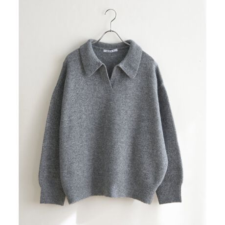 ふんわりとしたウール混素材が心地よい、ポロ襟スキッパーデザインのニットプルオーバー。