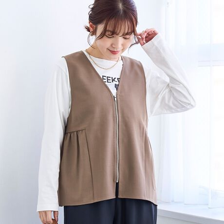 リネンライクで軽やかに。春映えペプラムジップベスト