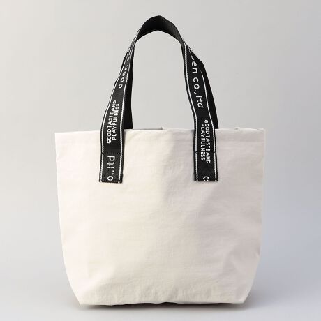 オリジナルのブランドロゴジャカードテープをポイント使いした、程よいサイズ感のトートバッグ。