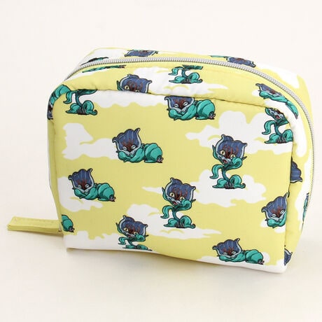 キュートな猫草を散りばめたポーチ。ポップでカラフルなデザインに仕上げました。キャラクターの個性が際立つユニークなアイテムはギフトとしても最適です。