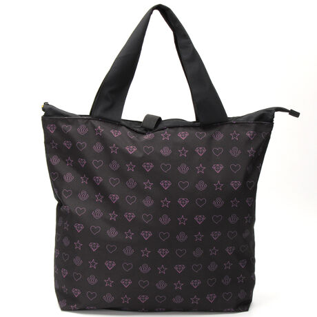 東方 仗助と"クレイジー・ダイヤモンド"をイメージしたエコバッグ。外側はブラックベースの落ち着いたカラーリングでまとめ、裏地にはアクセントとして鮮やかなイエローを使用しました。男女問わずシンプルで使いやすいデザインに仕上げています。