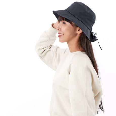 [型番:S11-806Q]撥水機能と防花粉効果を備えたレディース帽子「撥水防花粉ケープダウン」。リボンとひらひらのタックが女性らしい優雅なデザインで、後ろのゴムが快適なフィット感を実現。インナーはメッシュ素材で通気性に優れ、一日中快適にお使いいただけます。雨や花粉の季節に頼れる上品なアイテムです。