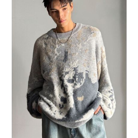 ニュアンス柄Wジャガードシャギーニット