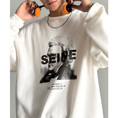 オリジナル肖像画プリントが主役のクルーネックスウェット。