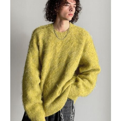 毛足のあるミックスシャギー素材が魅力のクルーネックセーター。