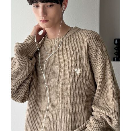 「Oversized Ribbed Knit Crew Neck Sweater/ 畔編みオーバーサイズクルーネックセーター」