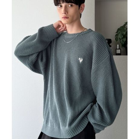 「Oversized Ribbed Knit Crew Neck Sweater/ 畔編みオーバーサイズクルーネックセーター」