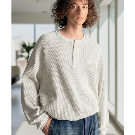 綿100%ワッフル生地を採用したオーバーサイズのヘンリーネックT。