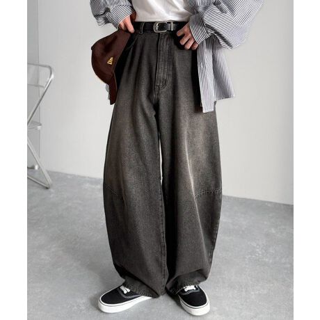 「Blasted Curve Silhouette Barrel-Leg Denim Pants/