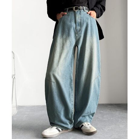 「Blasted Curve Silhouette Barrel-Leg Denim Pants/