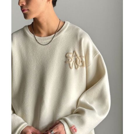 「サガラ刺繍風ロゴニット」は、ボリューム感のあるシルエットと肌馴染みの良い素材感が魅力。