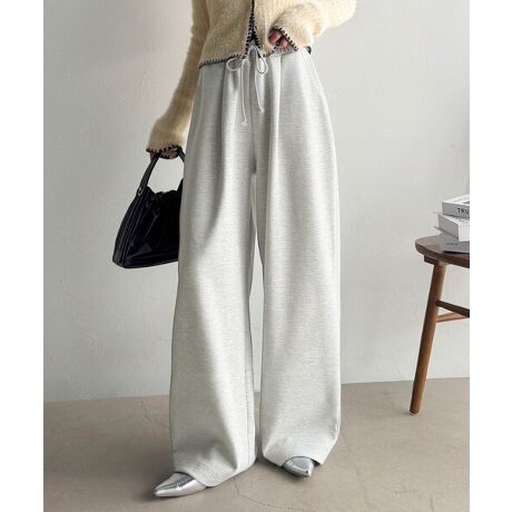 ゆったりとしたワイドシルエットが脚のラインを拾わず、動くたびに空気を含むような流れるドレープ感を演出。