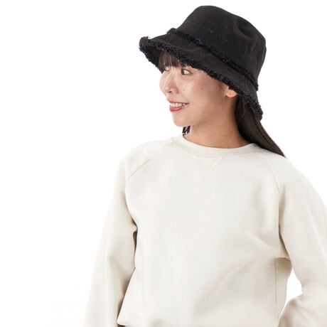 [型番:201S502Q]腰部分と、ツバ部分にフリンジを入れたカジュアルなバケットハットです。洗い加工が施されているので、適度な使用感がこなれた着こなしを演出してくれます。サイズ調整可能なので安心してお求めいただけます。デニム素材の帽子は季節を問わず被れますので、年中コーデのアクセントに加えられます。