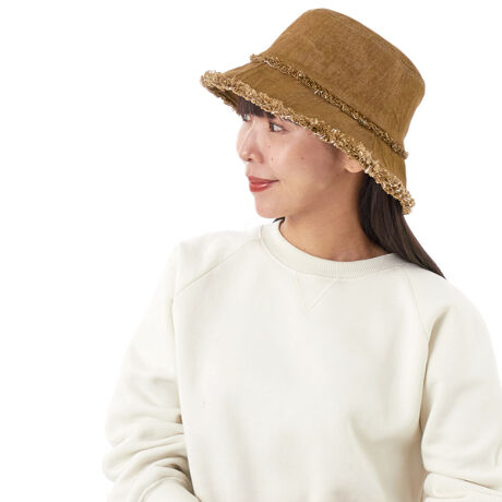 [型番:201S502Q]腰部分と、ツバ部分にフリンジを入れたカジュアルなバケットハットです。洗い加工が施されているので、適度な使用感がこなれた着こなしを演出してくれます。サイズ調整可能なので安心してお求めいただけます。デニム素材の帽子は季節を問わず被れますので、年中コーデのアクセントに加えられます。