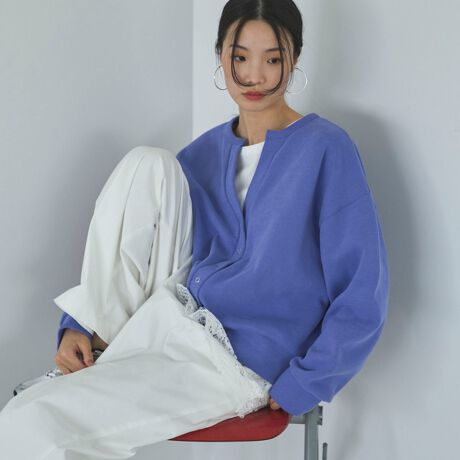 ・ゆったりめの身幅と大きく開いたネックラインで抜け感のあるデザイン
