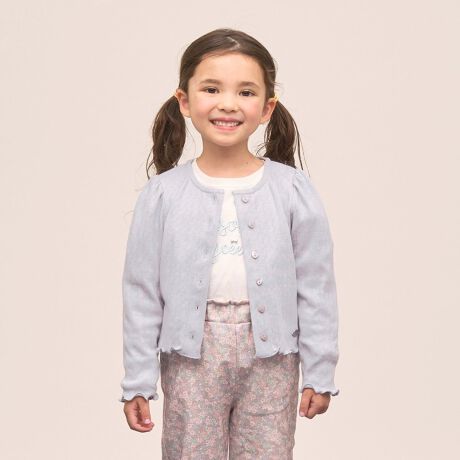 柔らかなパターンメッシュ素材が特徴のカーディガン