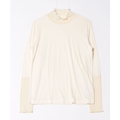 透け感のあるリブ素材を組み合わせた、上品に着こなせるハイネックトップス。