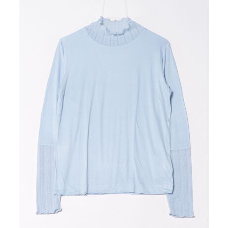 透け感のあるリブ素材を組み合わせた、上品に着こなせるハイネックトップス。