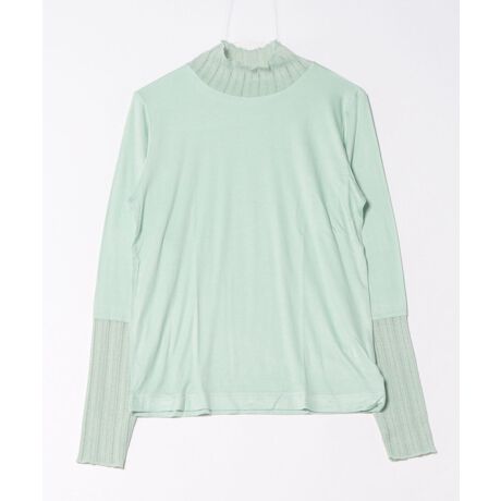 透け感のあるリブ素材を組み合わせた、上品に着こなせるハイネックトップス。