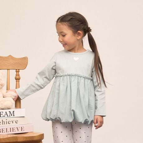 スカートのようなバルーンシルエットがガーリーな印象をプラスします。
