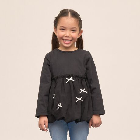 スカートのようなバルーンシルエットがガーリーな印象をプラスします。