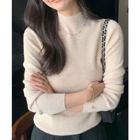 ハイネックリブニット