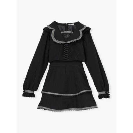 胸元のレースアップとフリル使いが華やかで、1枚で存在感のあるスタイルが完成します。