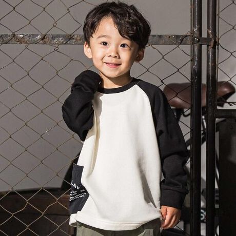 袖の切り替えデザインが目を引くバイカラーラグラントレーナー。