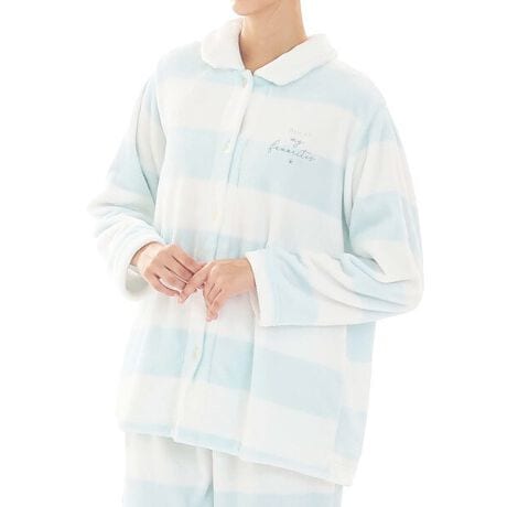 [型番:25-82404]ナルエーで人気のもこもこ素材「スノーパウダー」ふわふわと柔らかく、全身を包み込むようなあたたかさが魅力です。マシュマロのようなタッチ感で、思わず頬ずりしたくなるほどのなめらかさ。前開きのシャツパジャマ。ふんわりとした素材感に加え、襟付きデザインで上品な印象をプラスしました。色合いが爽やかで、リラックスタイムを優しく彩ります。