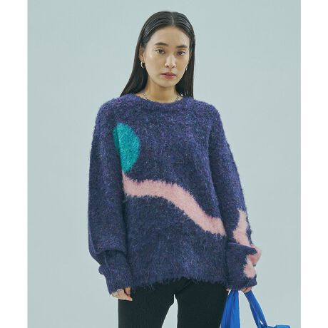 ・大胆なカラーとユニークなラインが目を引く、個性派デザインのニット