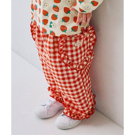 ギンガムチェック×いちご柄のスタイリングが今季のイチオシ。